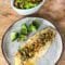 - Por fim, sirva com acompanhamento de sua preferência — aqui usei brócolis, mas batatas ou arroz também combinam muito bem.