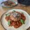 Na receita do vídeo, principalmente, apresentamos um polpetone recheado com mussarela e cozido em um molho de tomate com personalidade de bacon; assim sendo, não usamos cebola nem alho, e finalizamos com manjericão e uma chuva de queijo ralado.